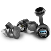 FrontCom® Vario integrates several functions in just one single or double frame. The system is easy to install and you can select from a wide range of data, signal and power modules (e.g. socket). FrontCom® Vario is not only extremely compact, but also has an attractive housing design, is extremely shock-resistant and meets protection class IP 65.